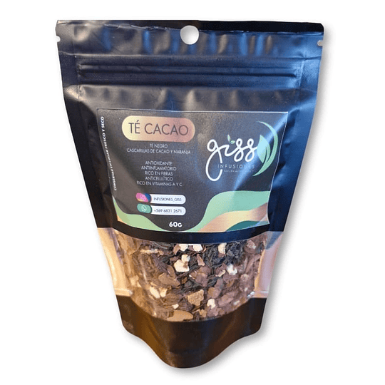 Té negro , con cáscaras de cacao y naranja.Antioxidante, antinflamatorio, anticelulítico, rico en vitamina A y C.